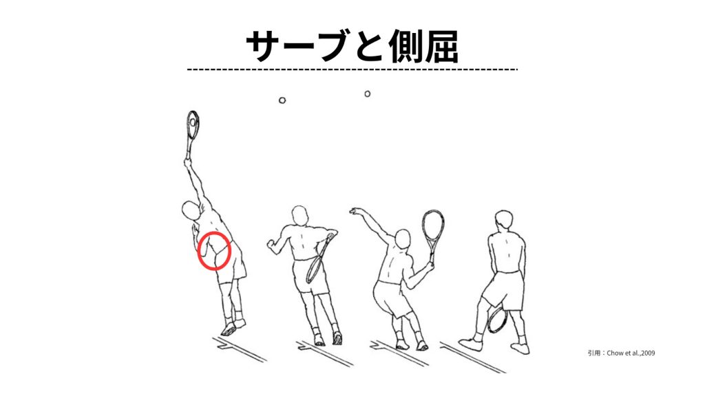 ・側屈により、利き腕の肩が上がり、より高い打点でのインパクトが可能になる。