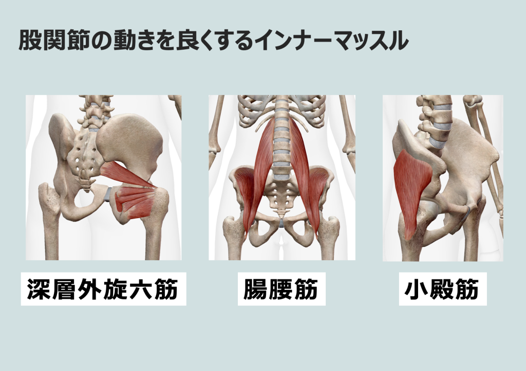 股関節の内側にある内転筋は股関節を良いポジションで安定させる役割があります。