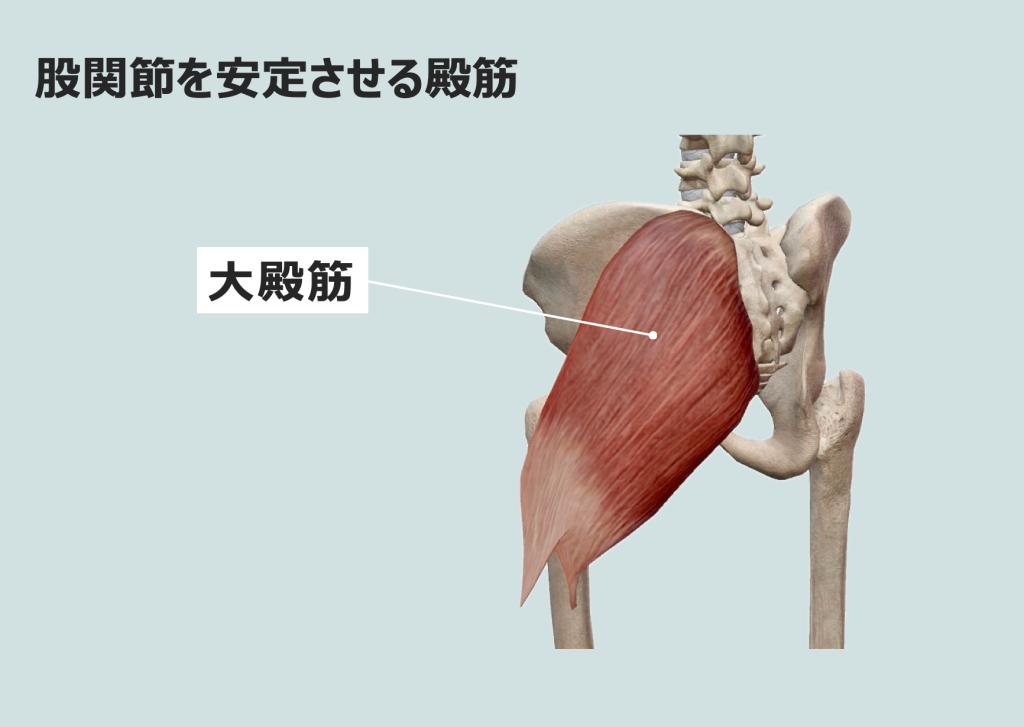また殿部の筋肉は股関節を屈曲する際に大腿骨が後方に滑り込む動きを助ける役割があるため、股関節につまりがある人や股関節が曲げにくい人は特に重要になります。